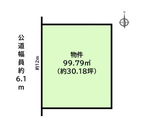 | 接道状況 | 西側:一方 幅員約6.1m 公道に約12.0m接面 | ||
