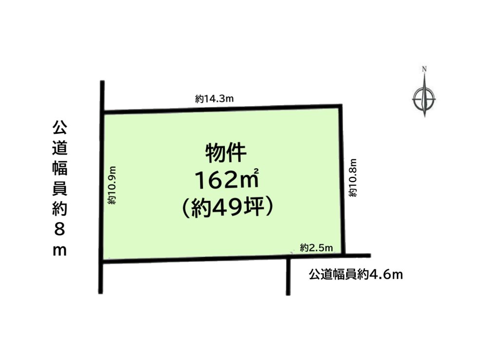 西側:二方(除角地) 幅員約8.0m 公道に約10.90m接面 南側:二方(除角地) 幅員約4.9m 公道に約3.00m接面 |
