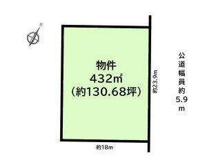 ◆土地面積432.00㎡ 約130坪 間口約23.9m 整形地 ◆建築条件なし!お好きなハウスメーカーで建てられます! |